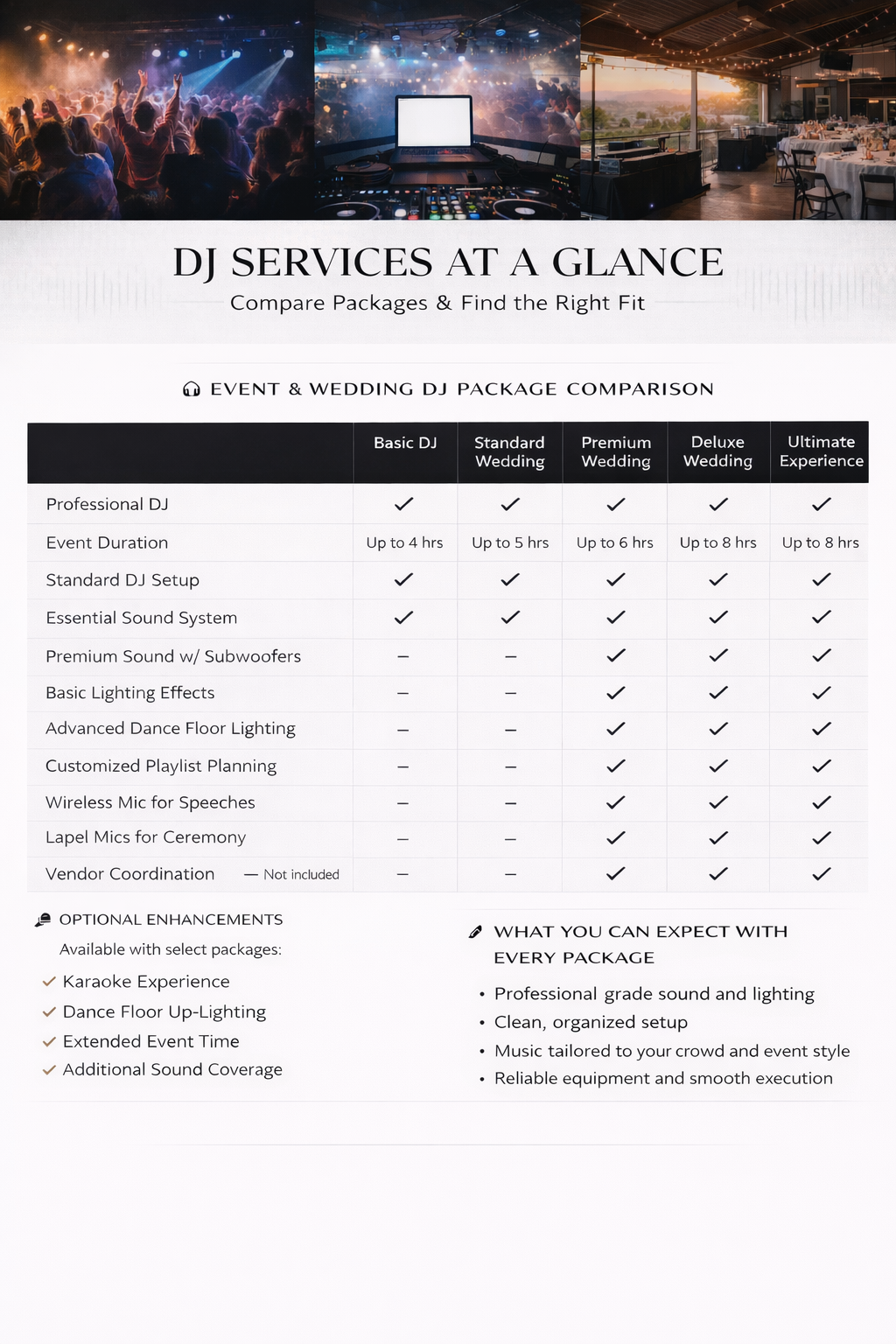 • Up to 8 hours of DJ Service